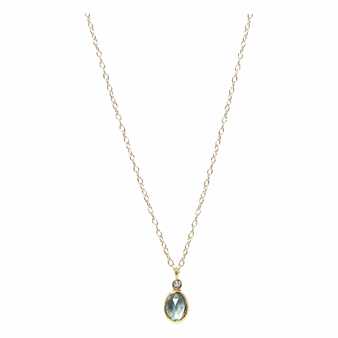 24k gold vermeil necklace : genuine 925 sterling silver plated with a 3 micron thick layer of 24 carats gold, diamond an tourmaline
