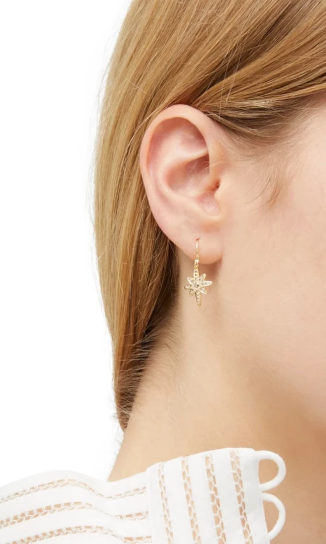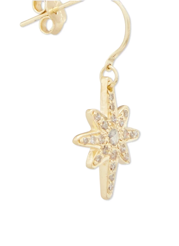 Vega Star earrings are little starbursts with diamonds that stand out brilliantly against the gold.Â
