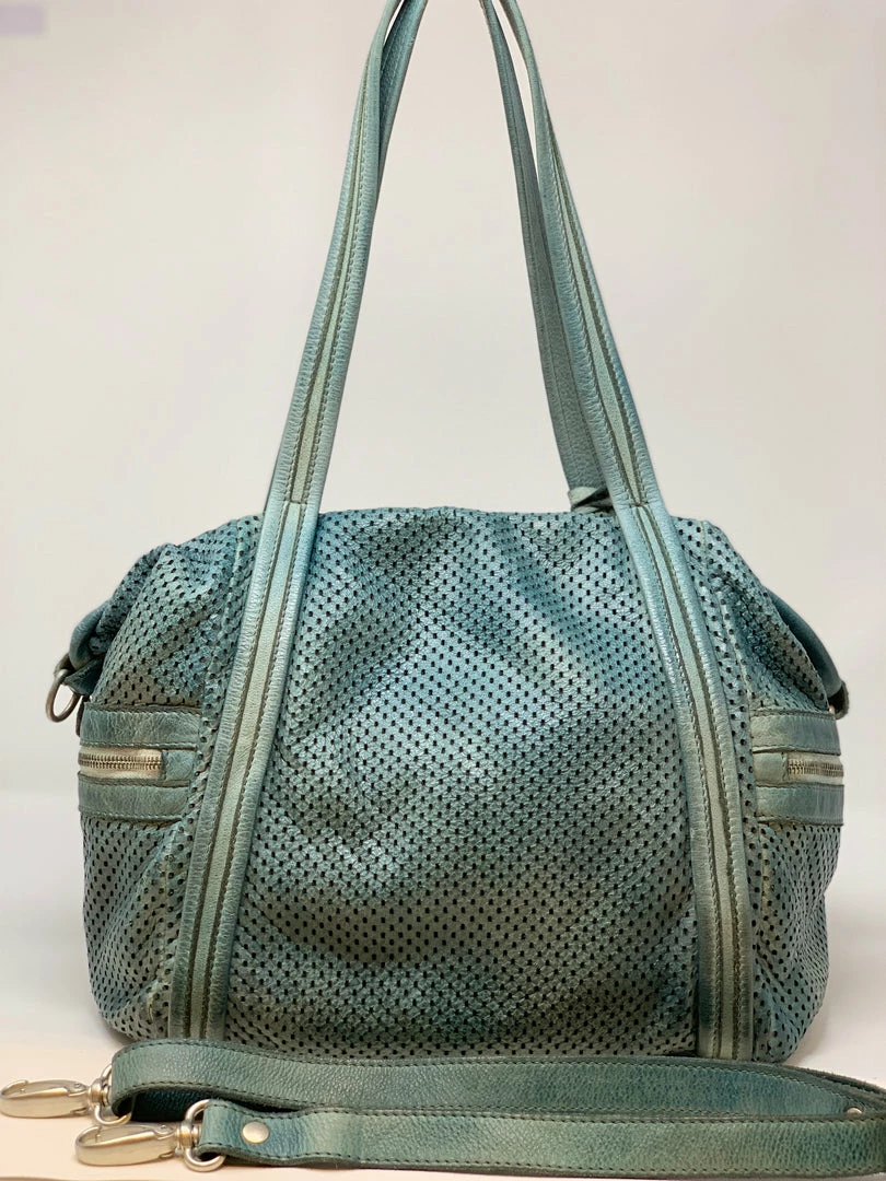 The perforated leather perfectly accentuates the lightness of this bag whose straps are so long you can wear them comfortably year round.