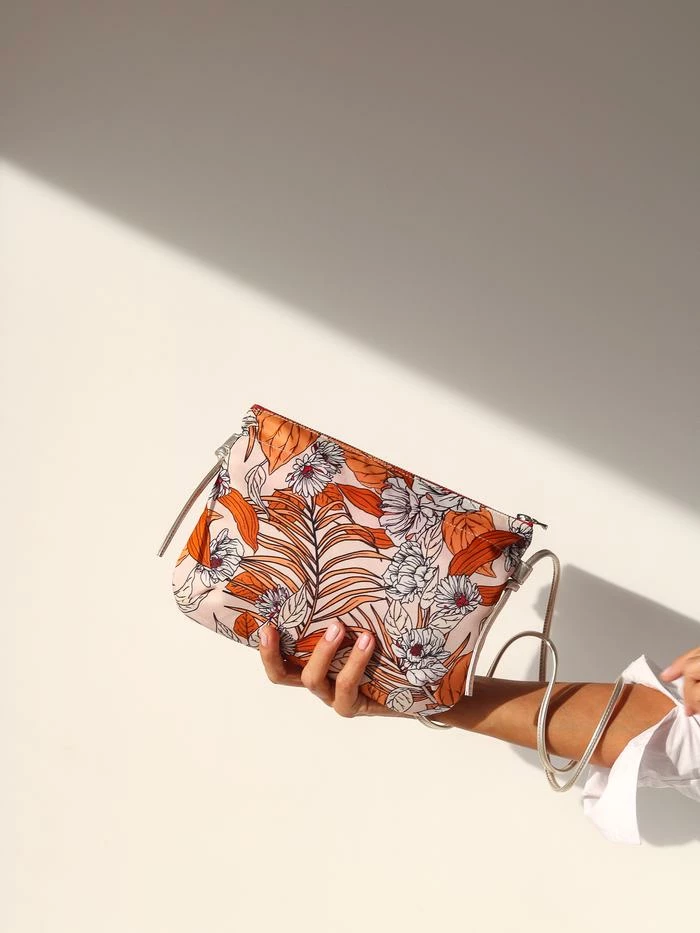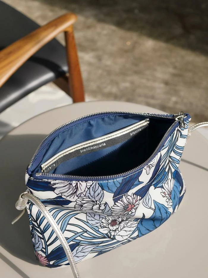 NEW | Brera, the satin nylon crossover bag with Floral print, exclusive Brontibay design, with its adjustable shoulder strap in metallic full grain leather. Ideal size for your essentials.