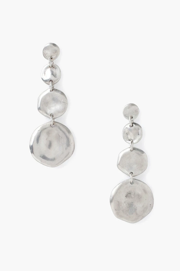 Four graduated silver pendants linked together move harmoniously. A classic silver earring for carefree living