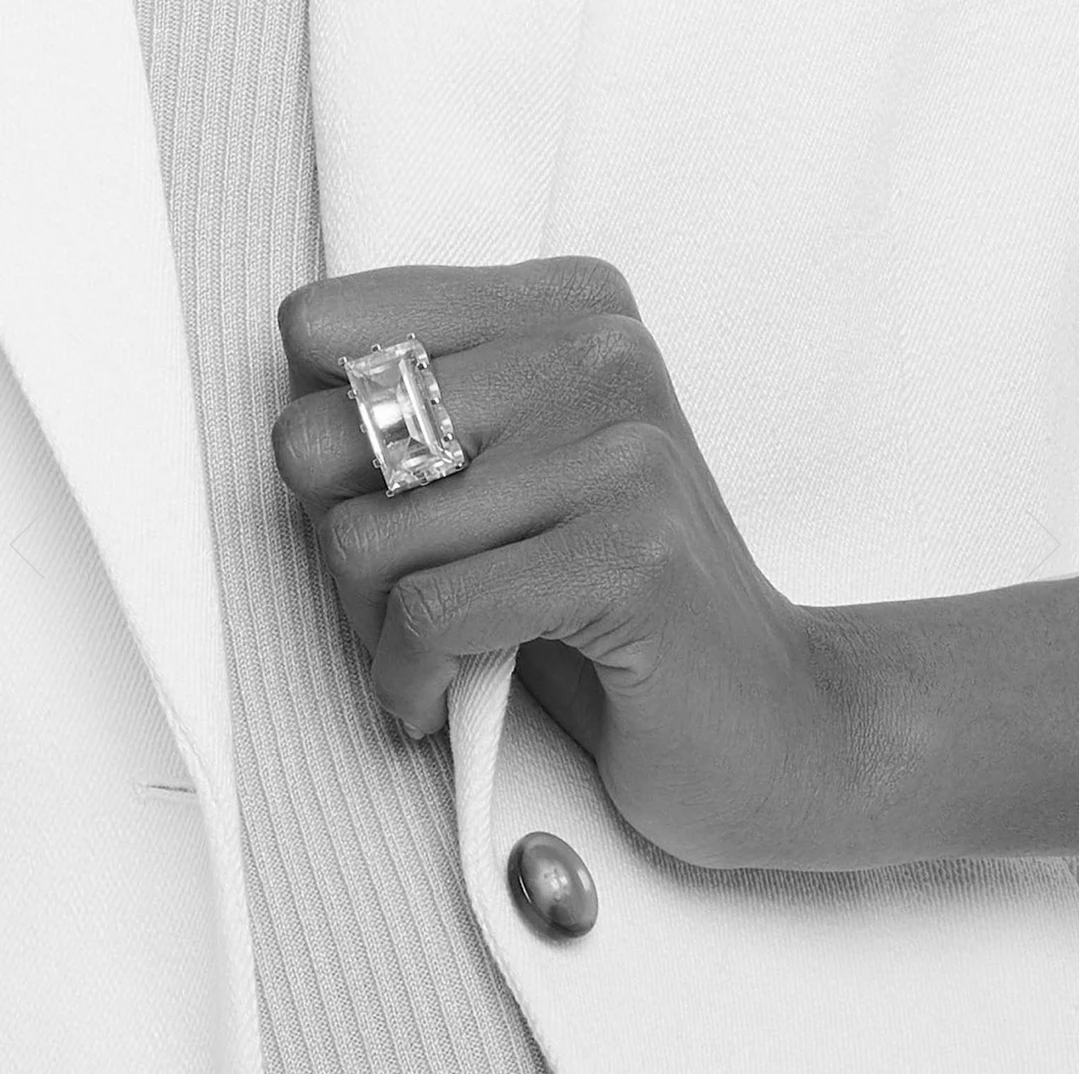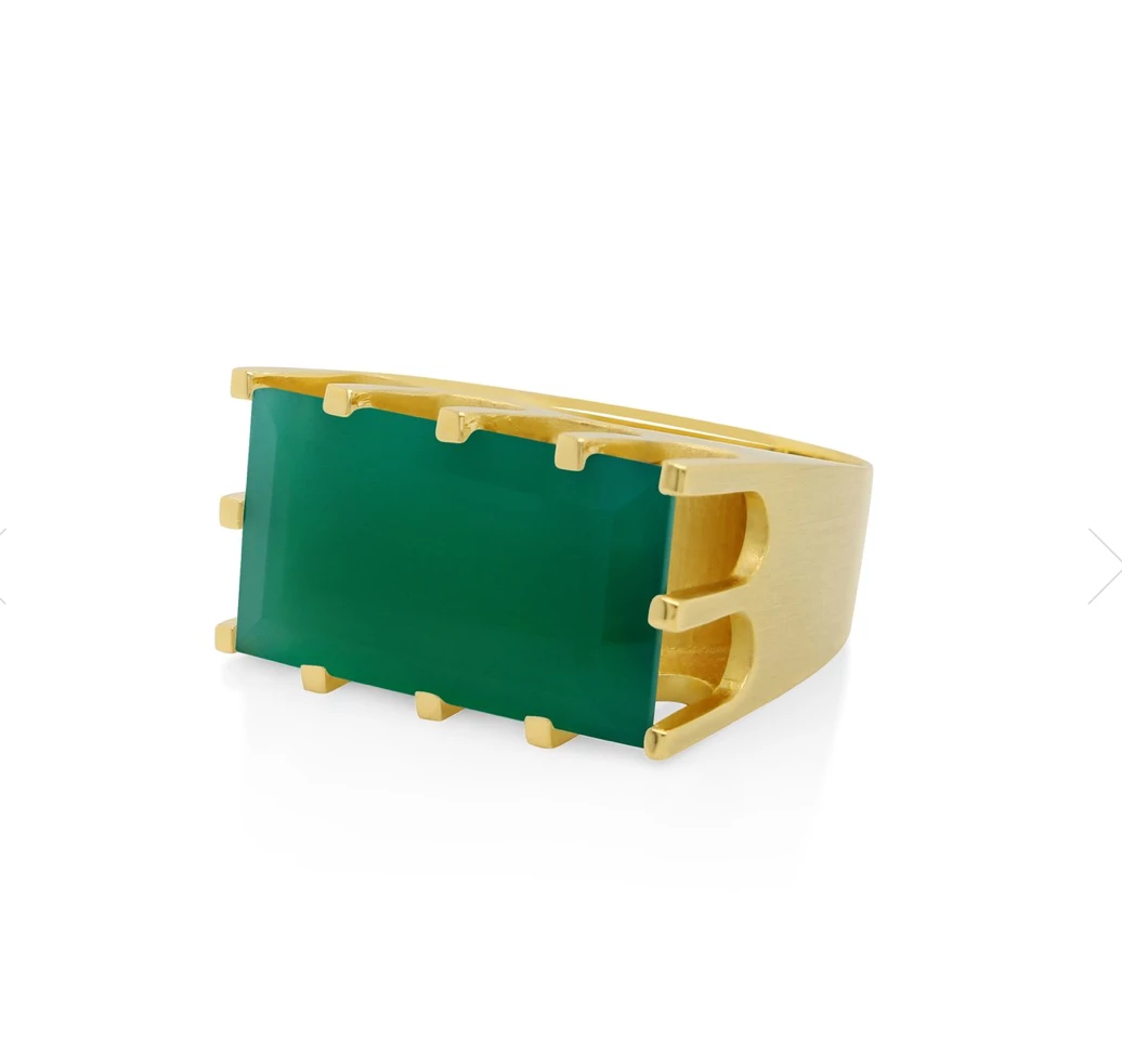 The Castle Ring features a statement-making, baguette-cut gemstone in a setting reminiscent of the parapets found on the rooftops of castles. Inspired by the designer’s Scottish heritage, this unique, multi-prong setting lifts the gemstone above the band- allowing light permeate and giving a bright, ethereal glow to each stone.