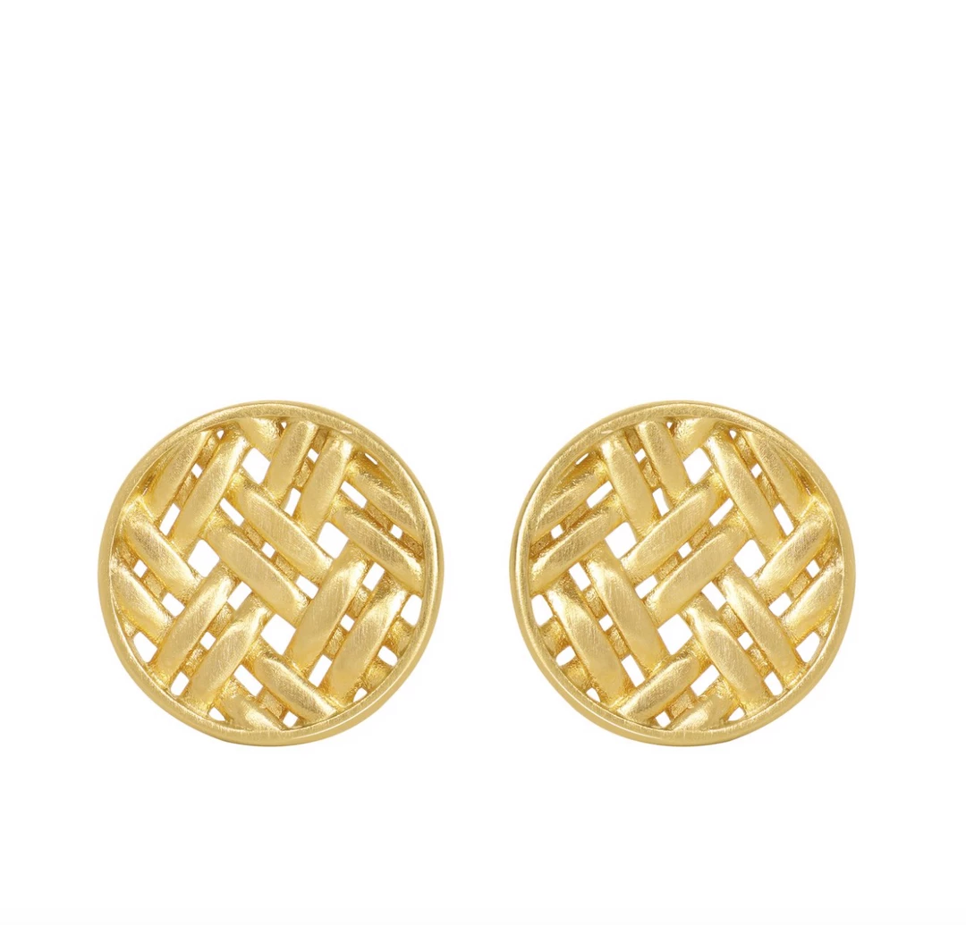 Like the interwoven leaves of lontar used to craft Balinese baskets, the Gilded Lontar Studs showcase criss-crossed gold strands in a lightweight disc silhouette. Wear with the Gilded Lontar Bracelet and Gilded Lontar Pendant Necklace to complete the set.Â