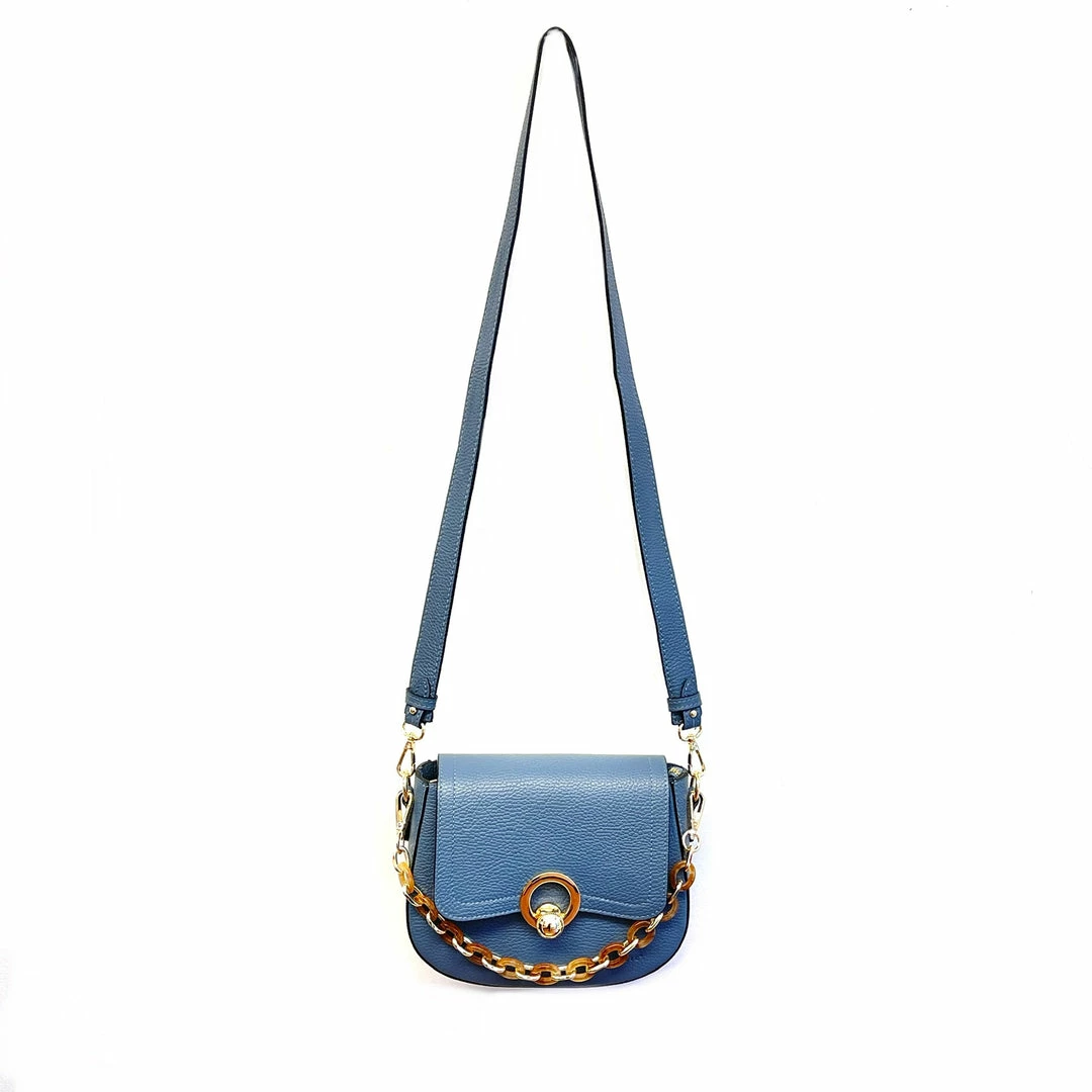 Full Calfskin Leather, detachable long leather shoulder strap, removable tortoiseshell chain