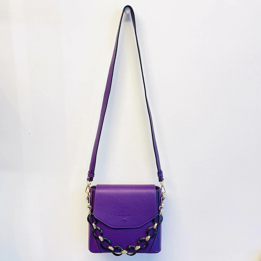 Full Calfskin Leather, detachable long leather shoulder strap, detachable resin tortoiseshell handheld chain