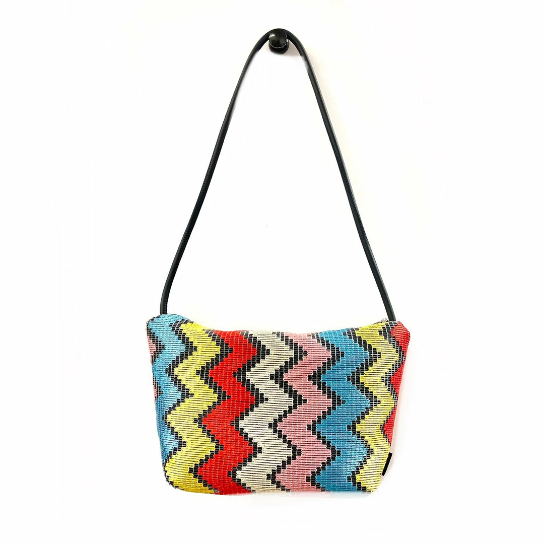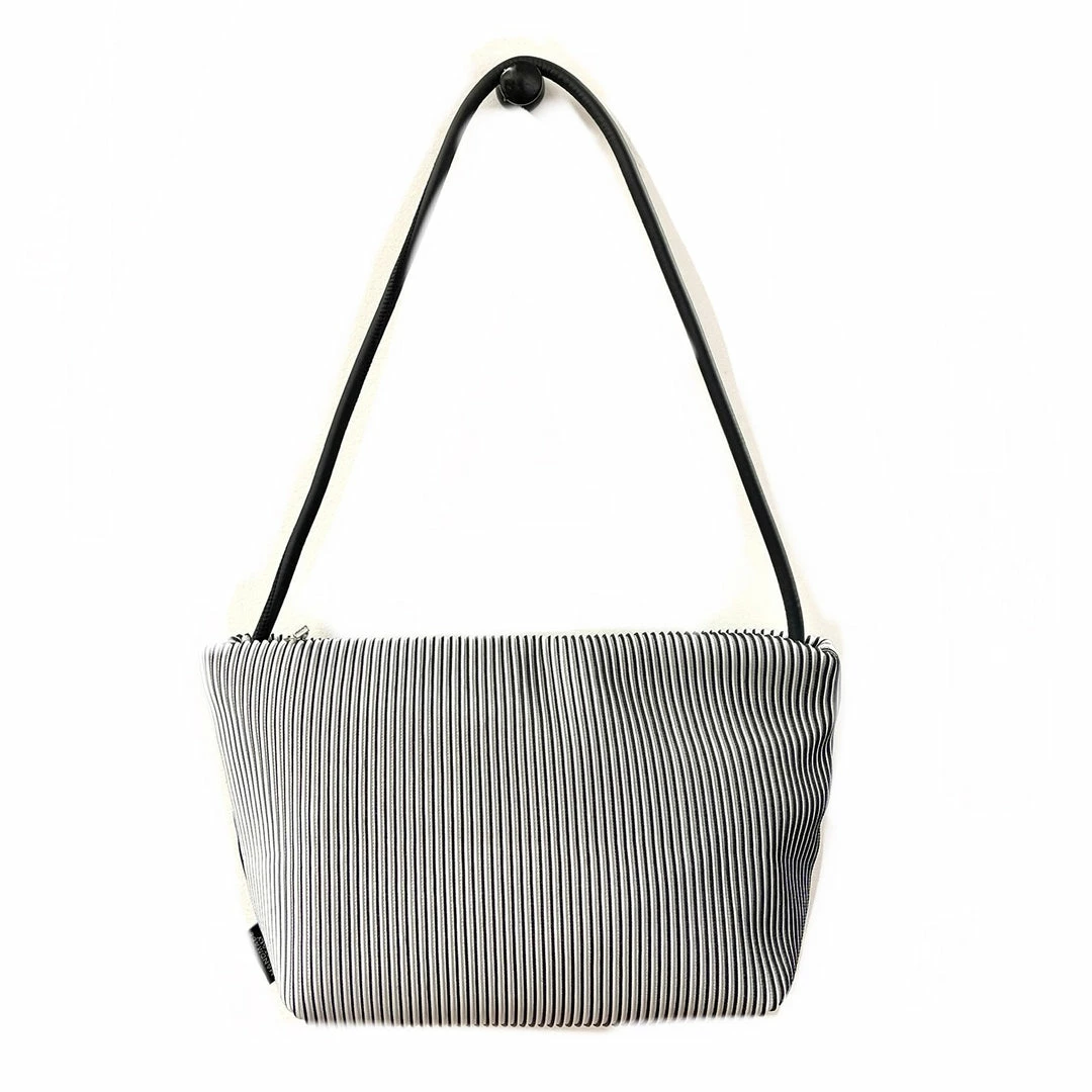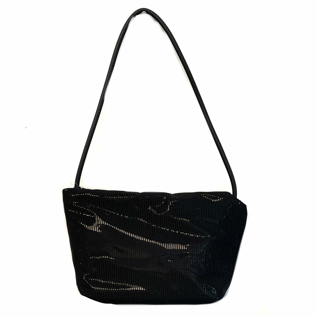 Neoprene shoulder strap attached to different waterproof technical fabrics. With no visible hardware, this is a chic minimalist update to the classic crossbody. Strap adjusts to shorter lengths by tying a knot on inside of bag. 100% vegan