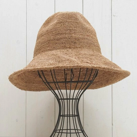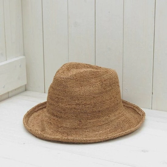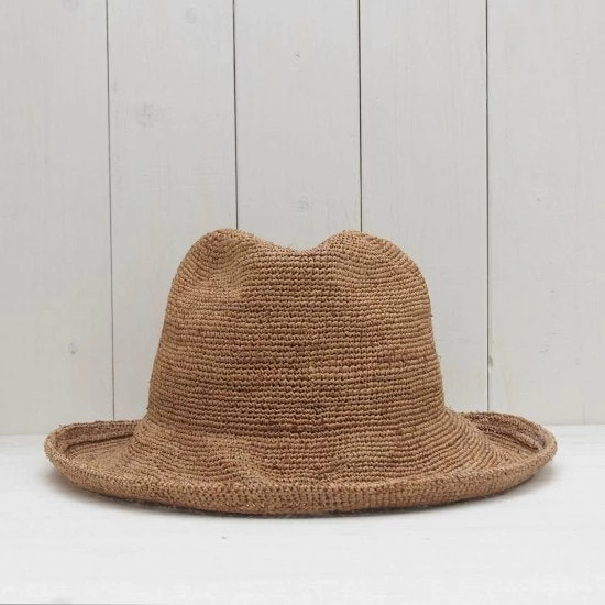 A soft fedora made of ultra-fine raffia material that has been hand-dyed afterwards.