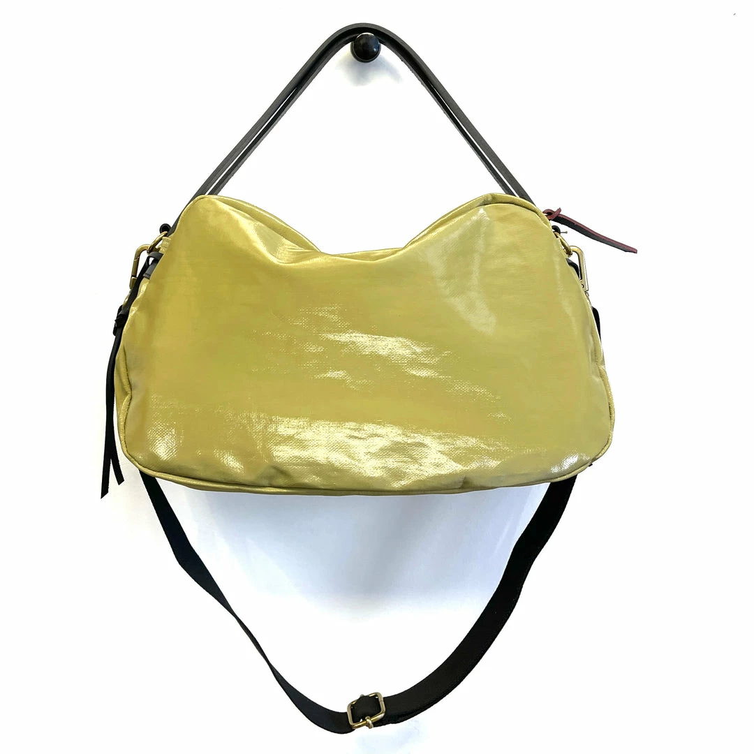 It can be worn crossbody, on the shoulder, or carried by hand thanks to its adjustable strap and double handle.