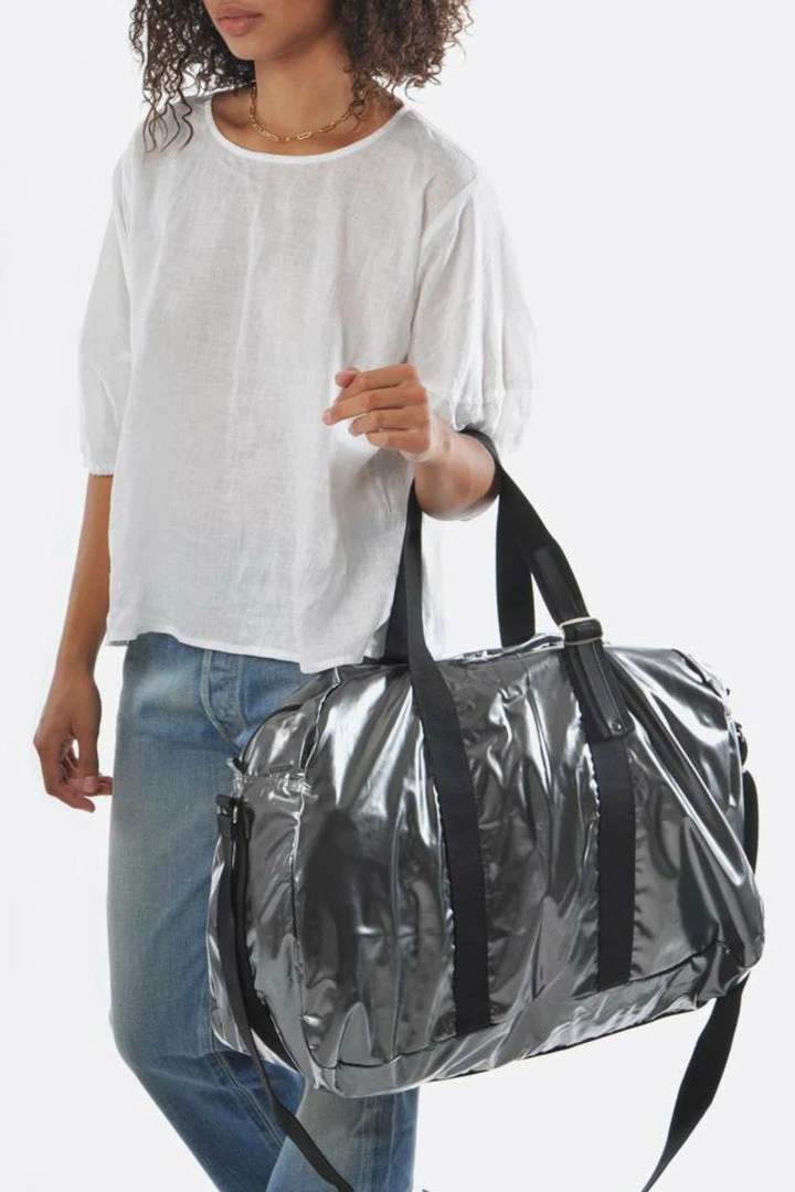This large weekend bag folds completely flat.