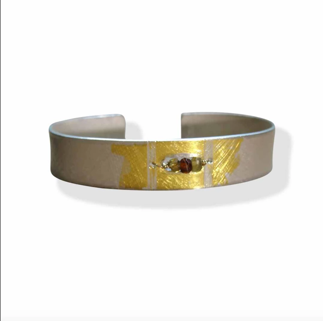 Fine Silver adjustable bracelet, partially oxidized fused with 24k gold leaf.