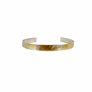 Sterling Silver adjustable bracelet, partially oxidized fused with 24k gold leaf.