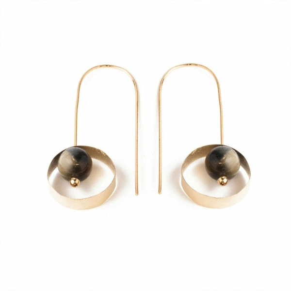 3″ overall length 1″ dangling rotating hoop with tiger eye center
