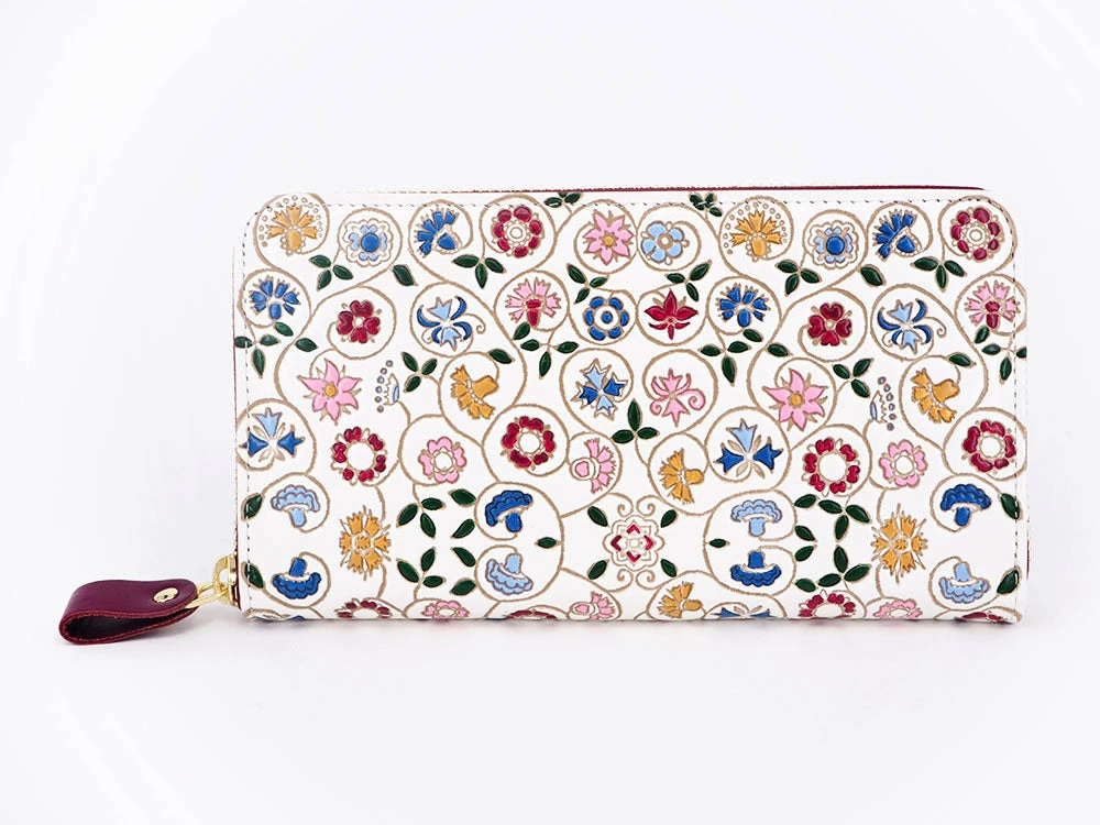 When you are in a hurry, you can rest assured that you can pack things up and be secure. Each wallet is hand embossed and painted, and each design is a small edition in extremely limited quantities.
