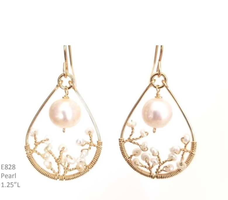 14K gold Filled wire wrapped teardrop wreath of seed pearls