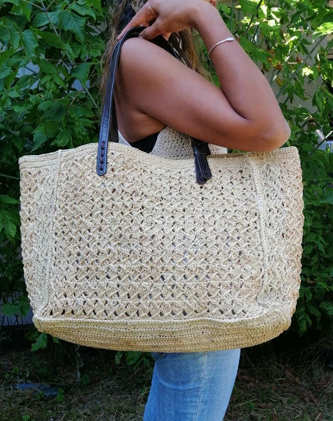 This soft, large raffia tote is a great easy daily carryall for toting a bottle of rose to the park or beach.