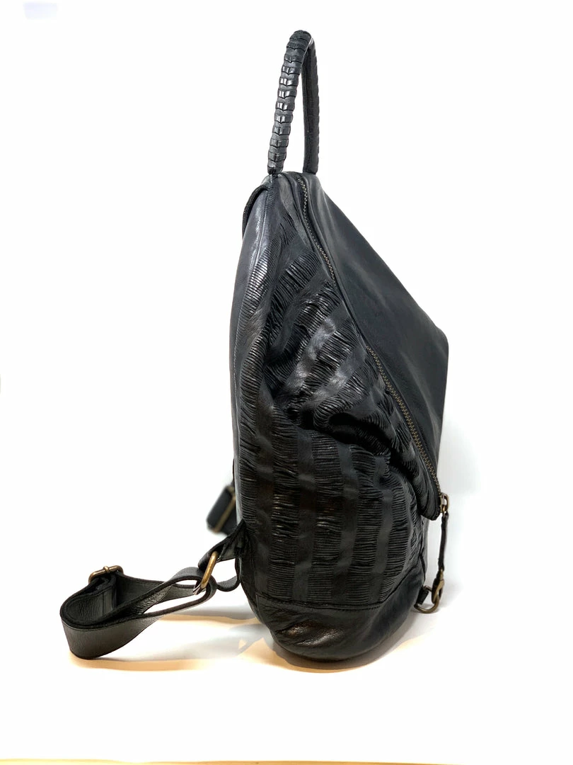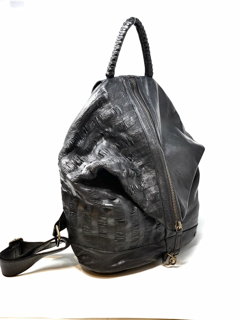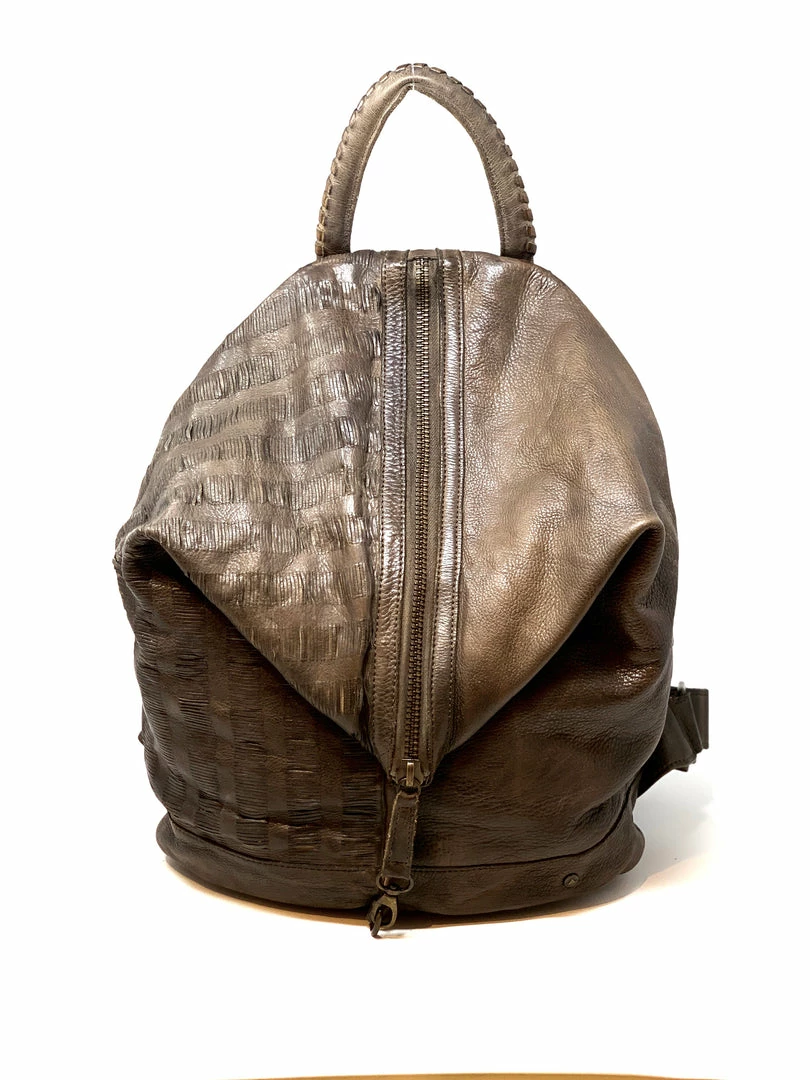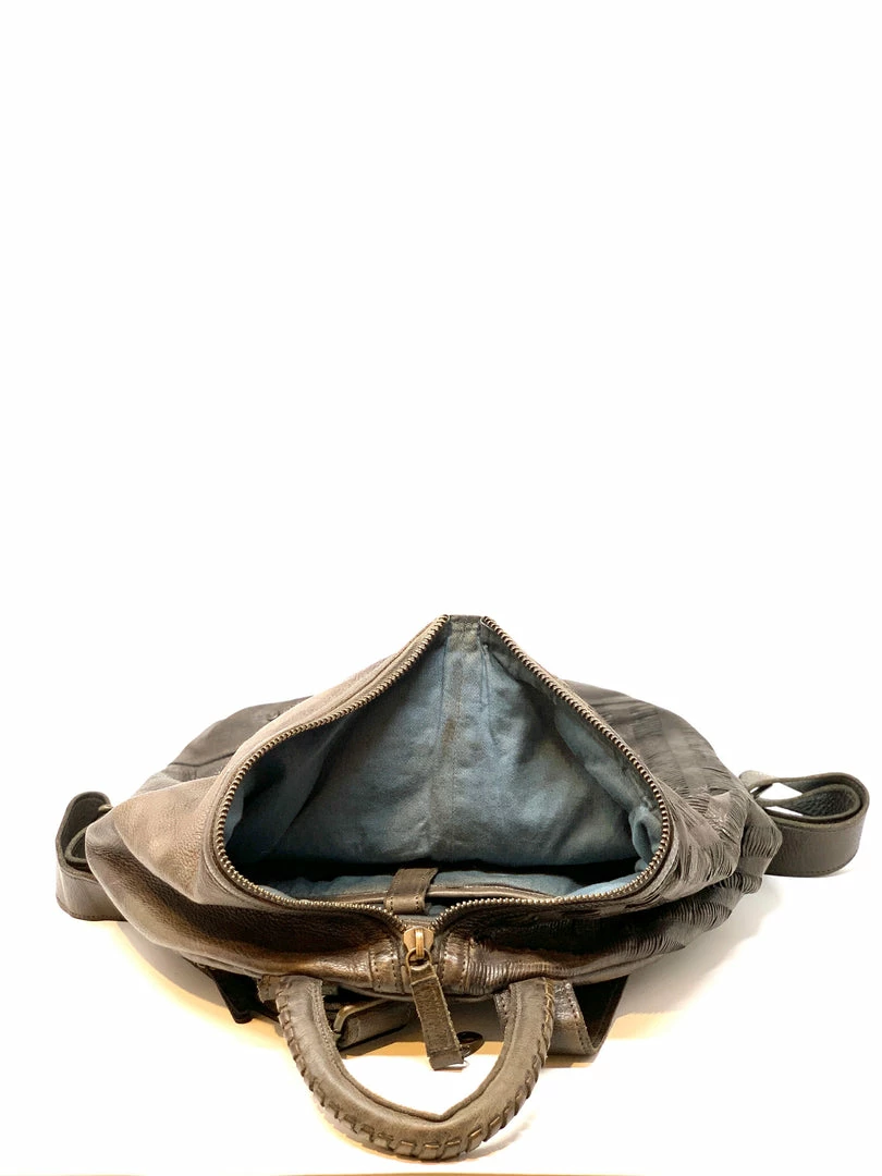 Made of washed Italian leather the solid colors develop a rich ombré finish that is more dramatic in the lighter colors. Featuring a zip and clip closure in addition to a hidden large zip pocket in the back. This is a great style for hiding your laptop in as it has a padded compartment for up to a 13” laptop.