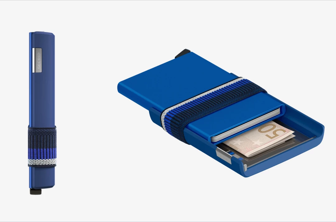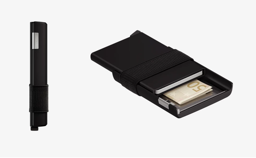is a modular wallet consisting of a Cardprotector and a Slide, held together by a Moneyband. The extendable Slide provides extra space to carry business cards, banknotes, coins and small personal items.