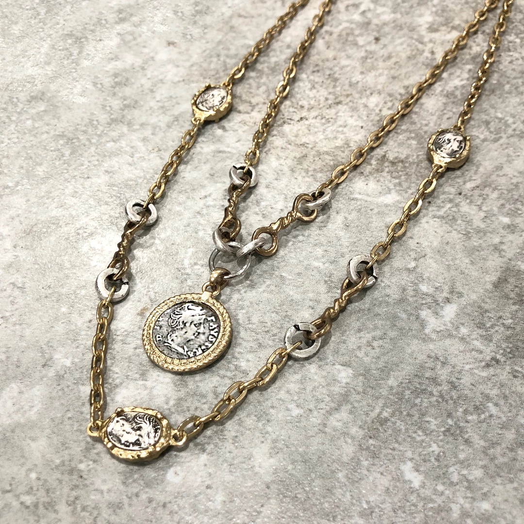The Strati Di Monete (Coin Layers) collection, combines our signature elements; antique coins and hand-sculpted chains. This combination ties together Tat2 staples for everyday wear, giving you beautiful layered looks and statement pieces.   Â