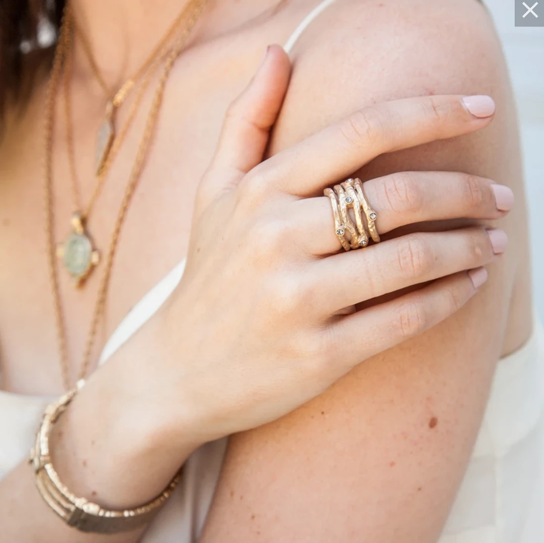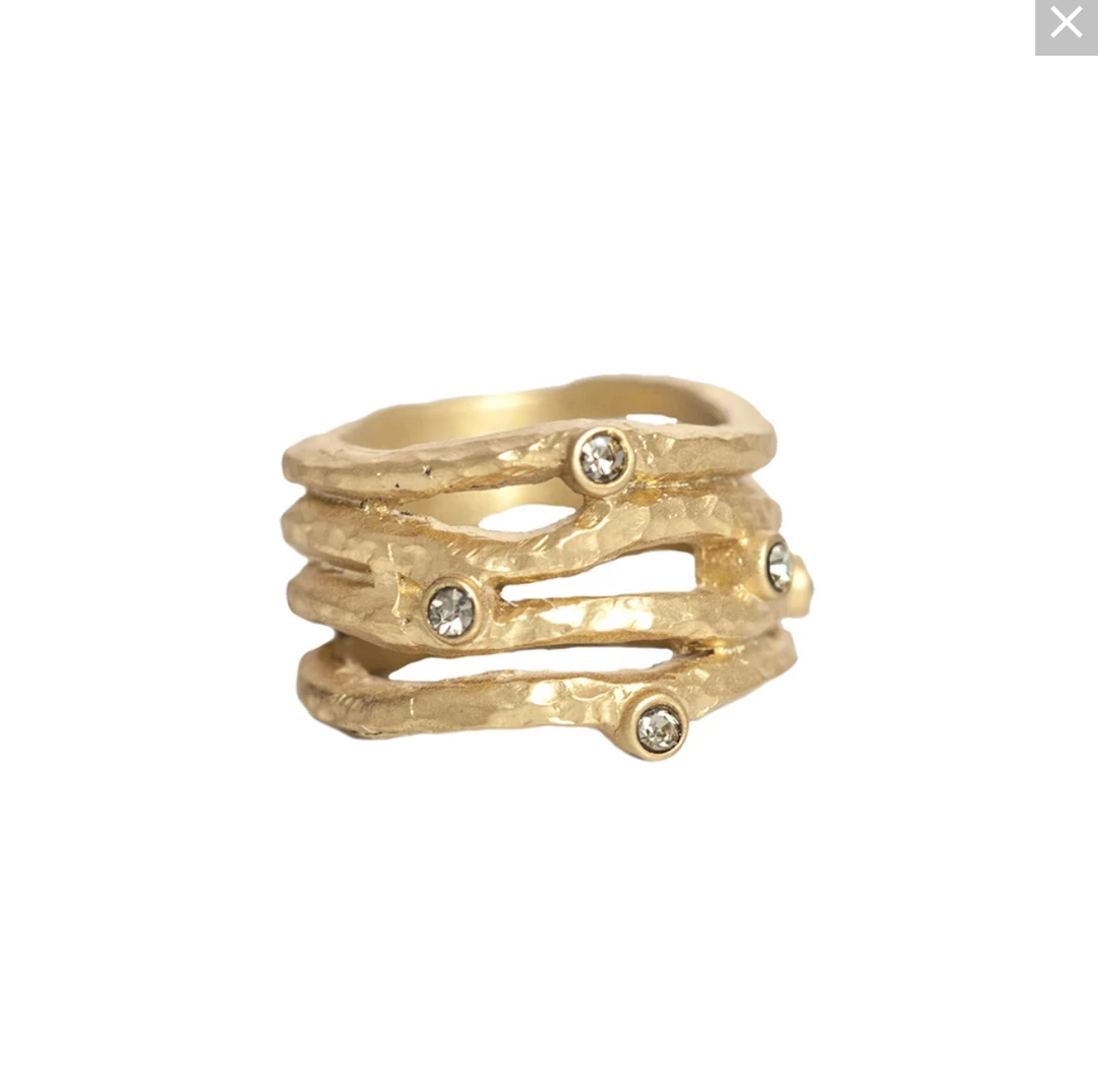 - 24k gold plated brass hammered four row band ring