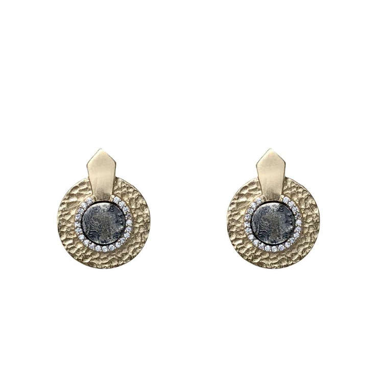 - Cubic zirconia pavé accents around coins