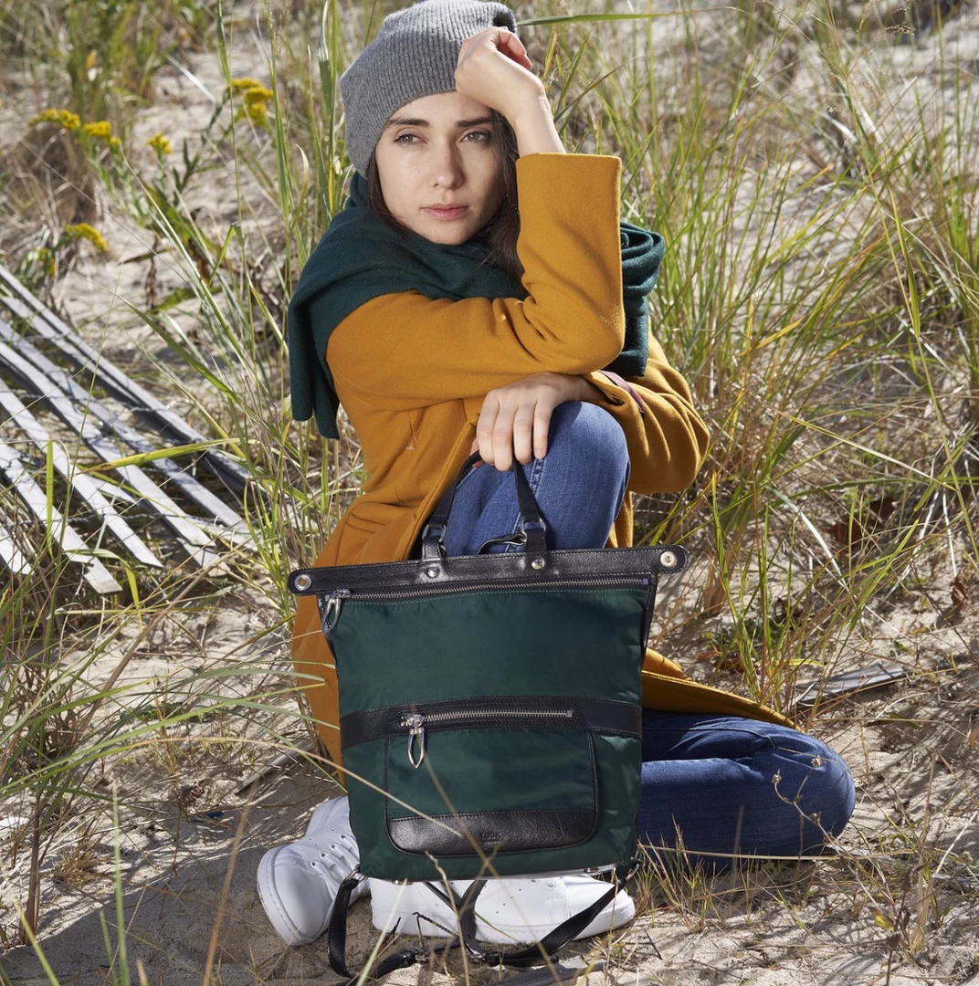 A must-have for any traveler, the luxurious Italian nylon with an outside zip pocket for sunglasses and travel guidebooks make this backpack irresistible. Outside corners snap together to conceal the zipper, providing extra security. And with two additional open pockets on the back and an inside zip pocket, there’s room for souvenirs picked up along the way.