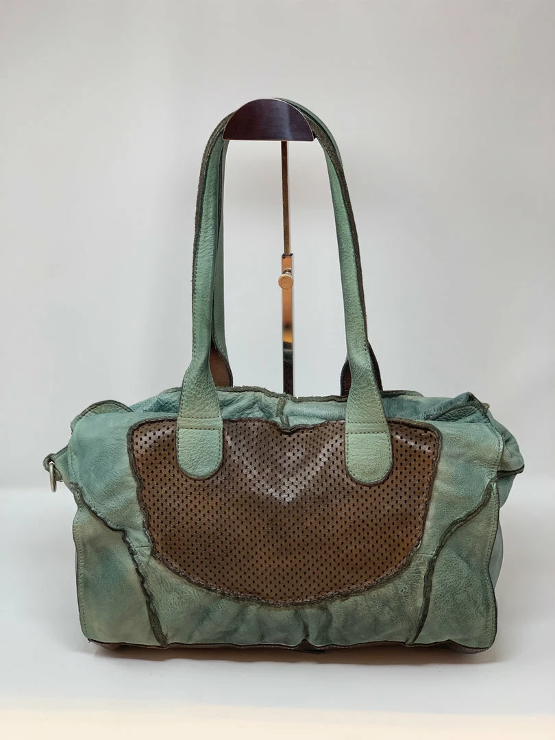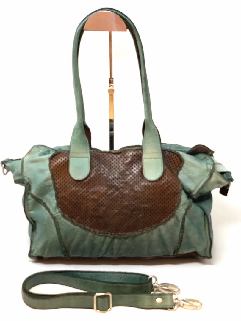 Medium sized bag with an ample shoulder drop. Lightweight leather with comfortable shoulder straps. Zipper top closure and detachable shoulder strap.